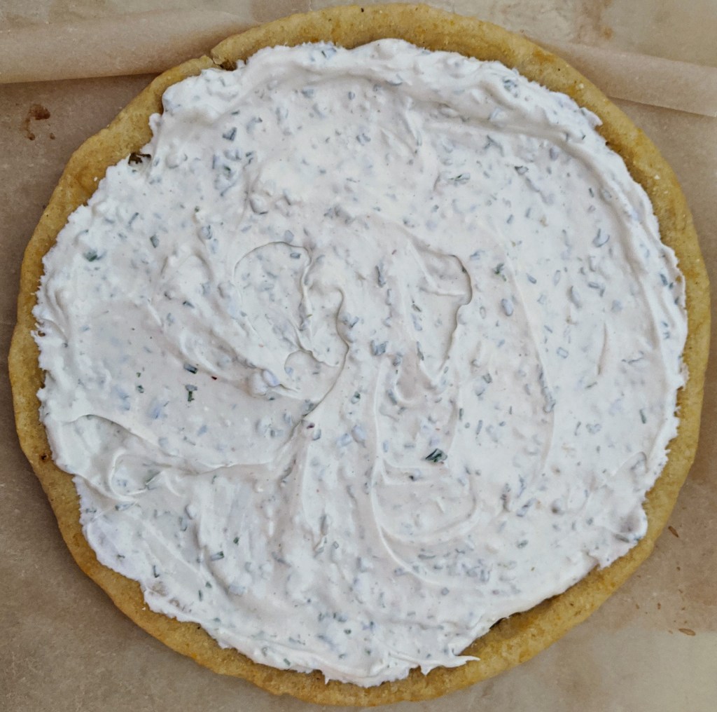 - Spread a thin amount of BBQ sauce over the center of the pizza, leaving the edge bare.