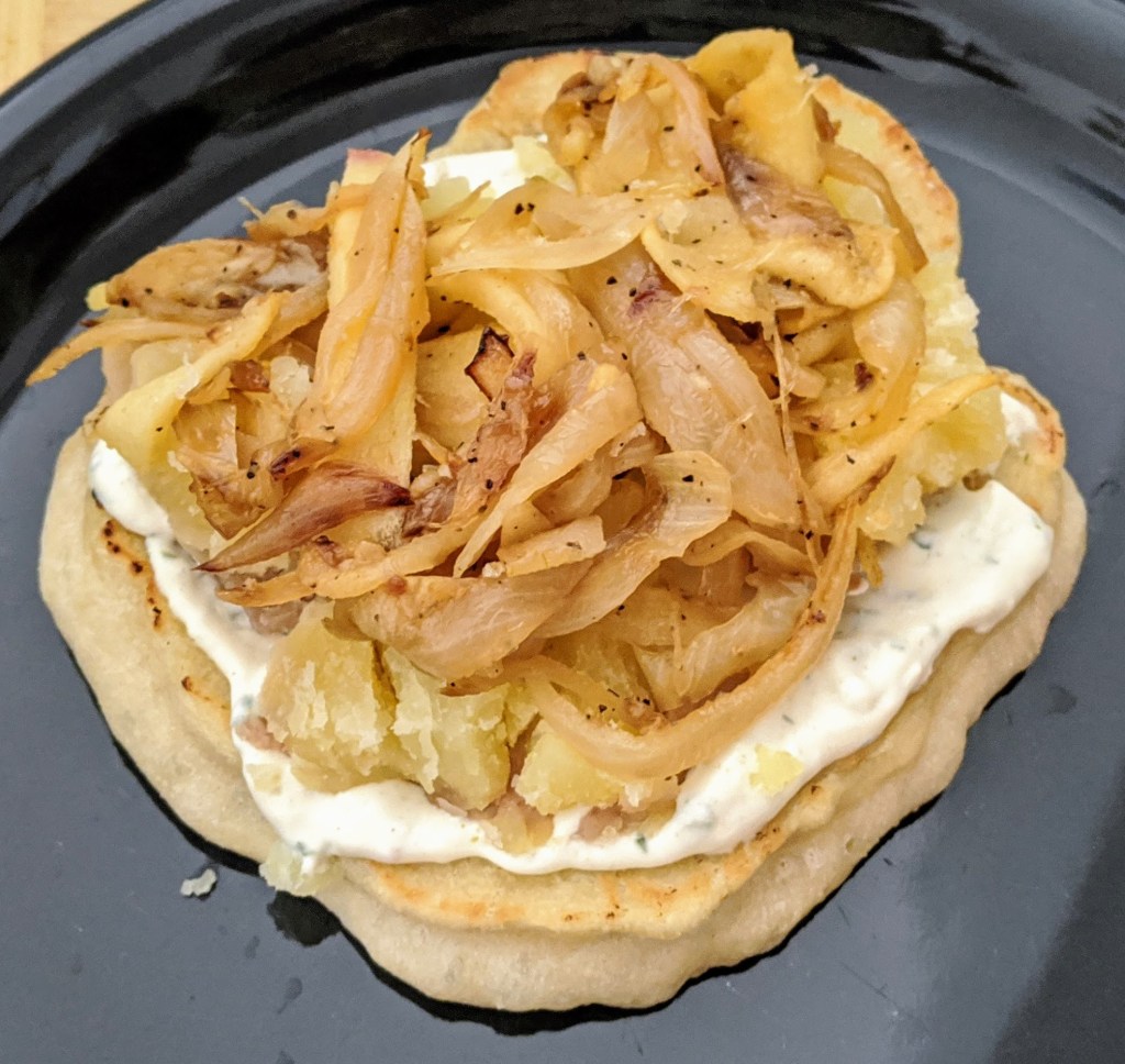 We enjoyed this pizza. It reminded us of our Hawaiian themed pizza during week 4. This pizza has the addition of marinated garbanzo beans. Adding beans to pizza is a great way to up the protein intake and make it feel like a more filling meal.