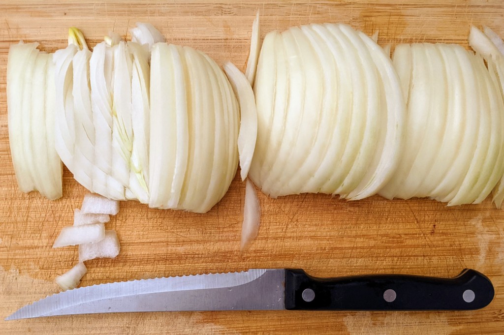 - Heat your frying pan over medium heat. Add a glug of avocado oil. Fry the onions for 2-3 minutes, then add the sliced peppers and pineapple, stirring occasionally. Let fry for another 5 minutes.