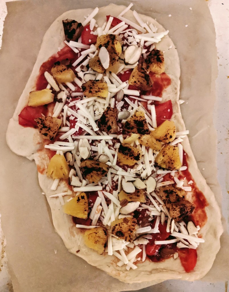 We love spicy food. I also read that during cold and flu season it’s good to eat spicy things. Perfect! We decided to make a vegan version of Il Diavolo this week and spice it up! Il Diavolo is the Devil’s pizza, meaning it is hot as heck and has layers of spicy flavors.