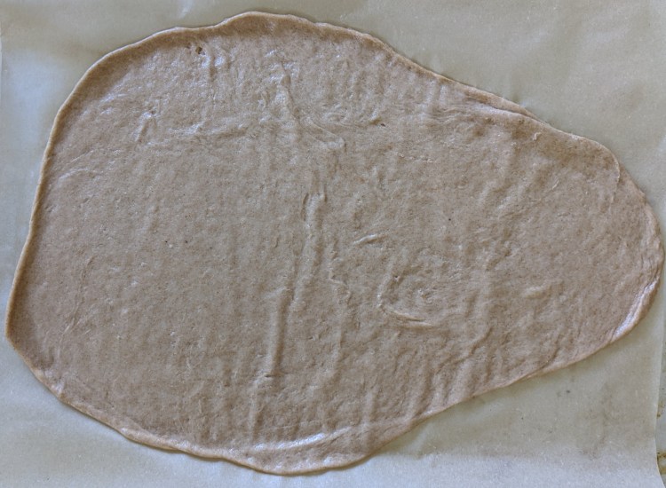 - Roll it out with a rolling pin or stretch it with your fingers to get the shape you want (not all crusts need to be round).